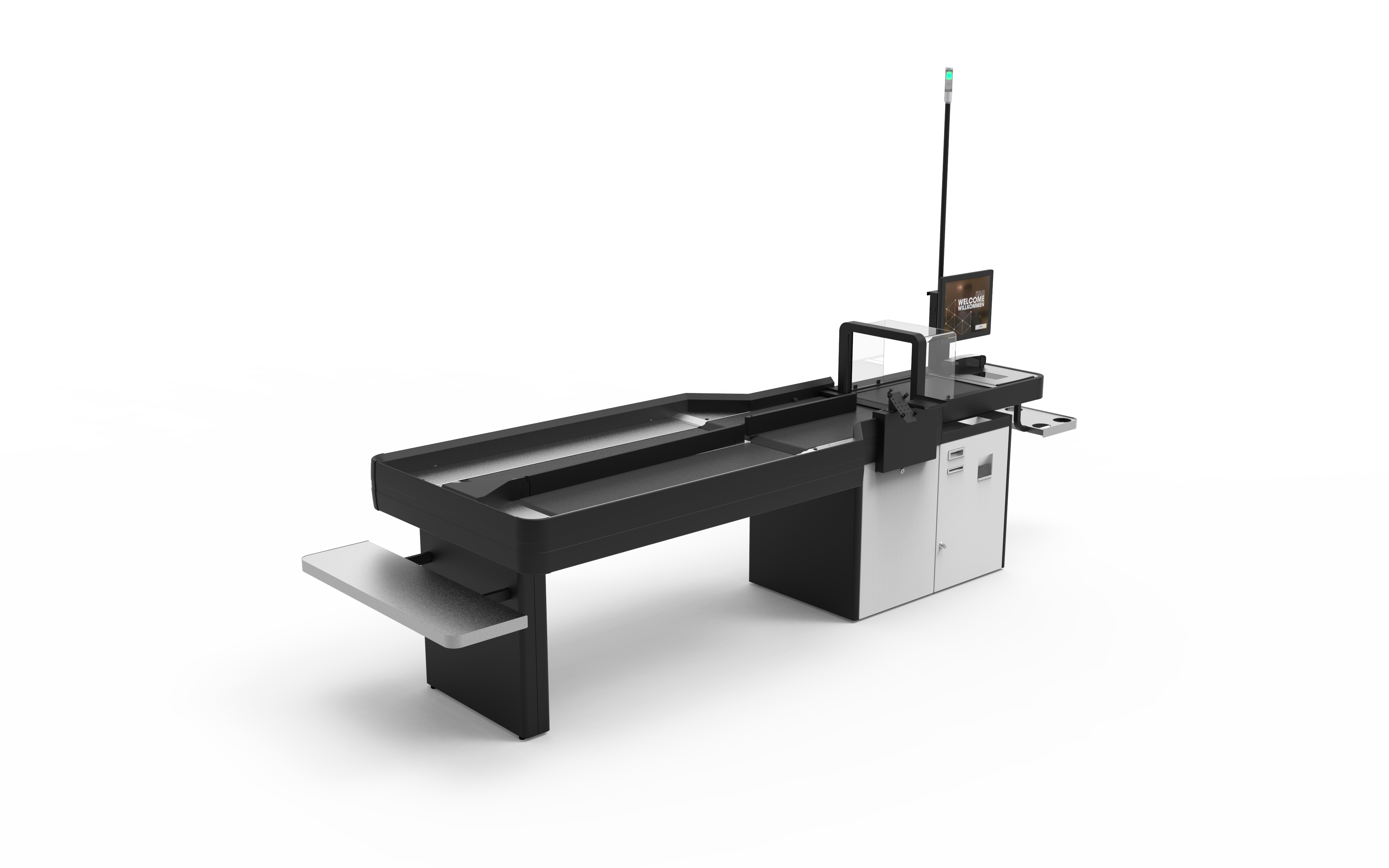 Twinflow is a self-checkout solution designed to speed up checkout times for larger purchases, allowing a single checkout to process 40% more transactions. The bagging area of the Twinflow is divided in two by an automatic arm that closes off a bagging section once a payment has been made. A second shopper can start scanning their items, with the independent conveyor belt directing these to the second bagging section. No waiting around for the first shopper to bag their goods or accidentally mixing up items by starting to scan before the first shopper has finished bagging.